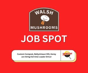 Custom Compost, Ballyminaun Hill, Gorey have a full time position available for a Loader driver. Experience in a similar type role is necessary. Must be reliable and enjoy working as part of a production setting. Please send your CV to helen@walshmushrooms.com